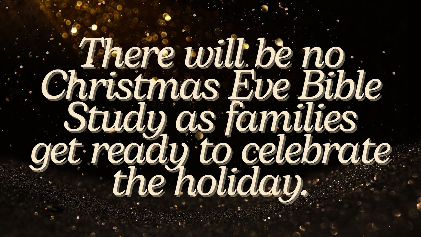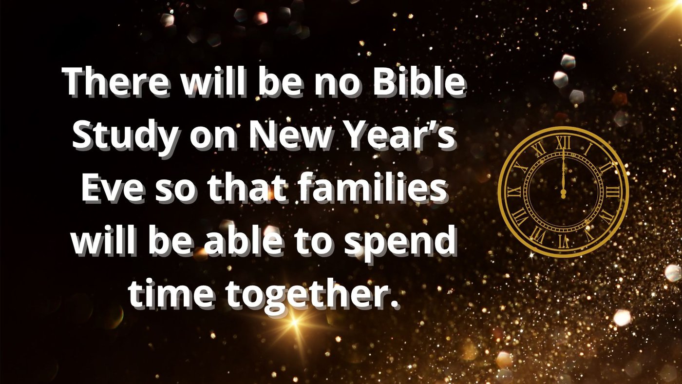 There will be no New Year's Eve Wednesday Bible study as families spend time together.